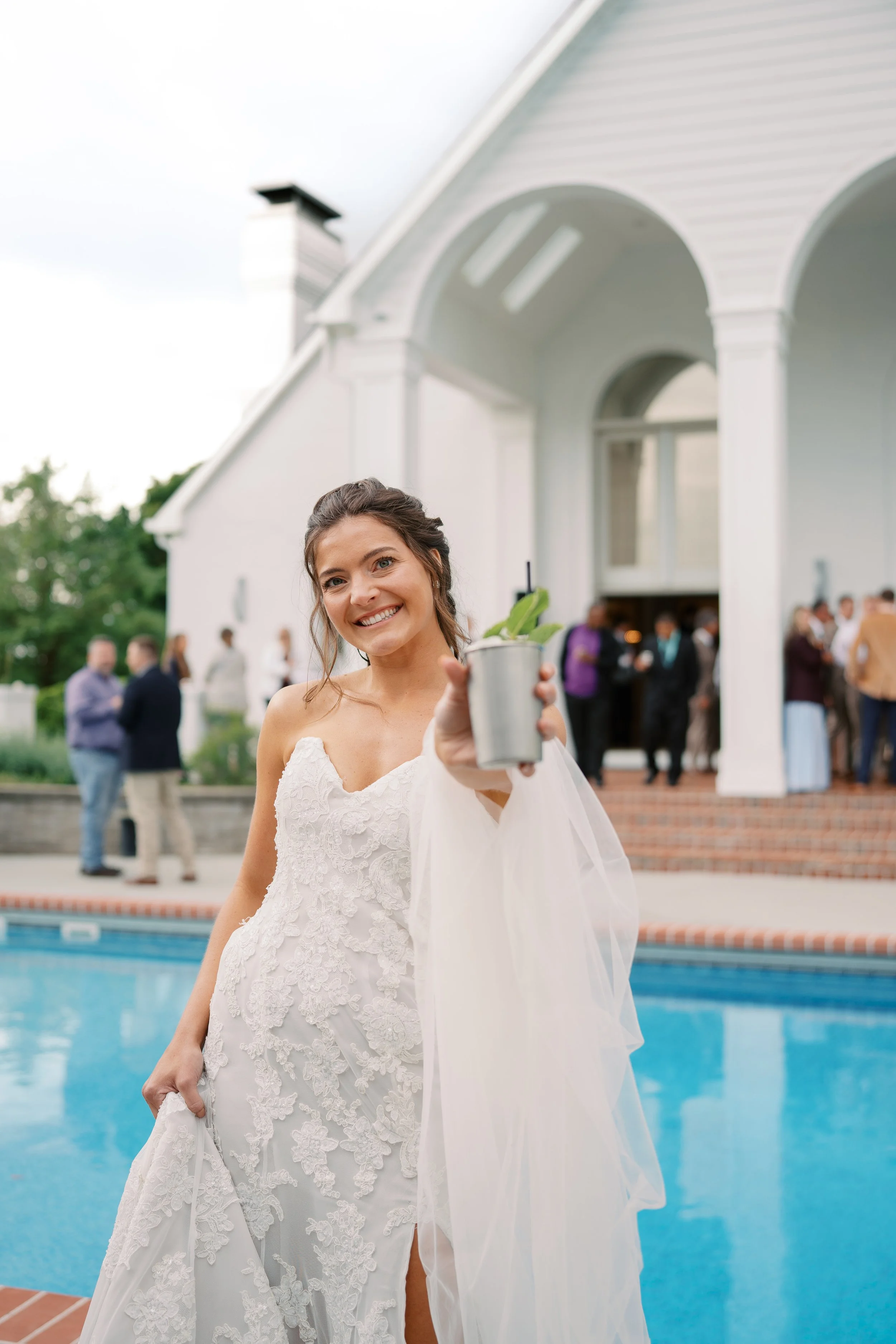 Host cocktail hour around the pool to create a beautiful indoor/outdoor flow that allows guests to mingle, sip, and enjoy the atmosphere. The poolside setting offers a relaxed yet elegant vibe, but we’re happy to explore other spaces on the property to match your vision.