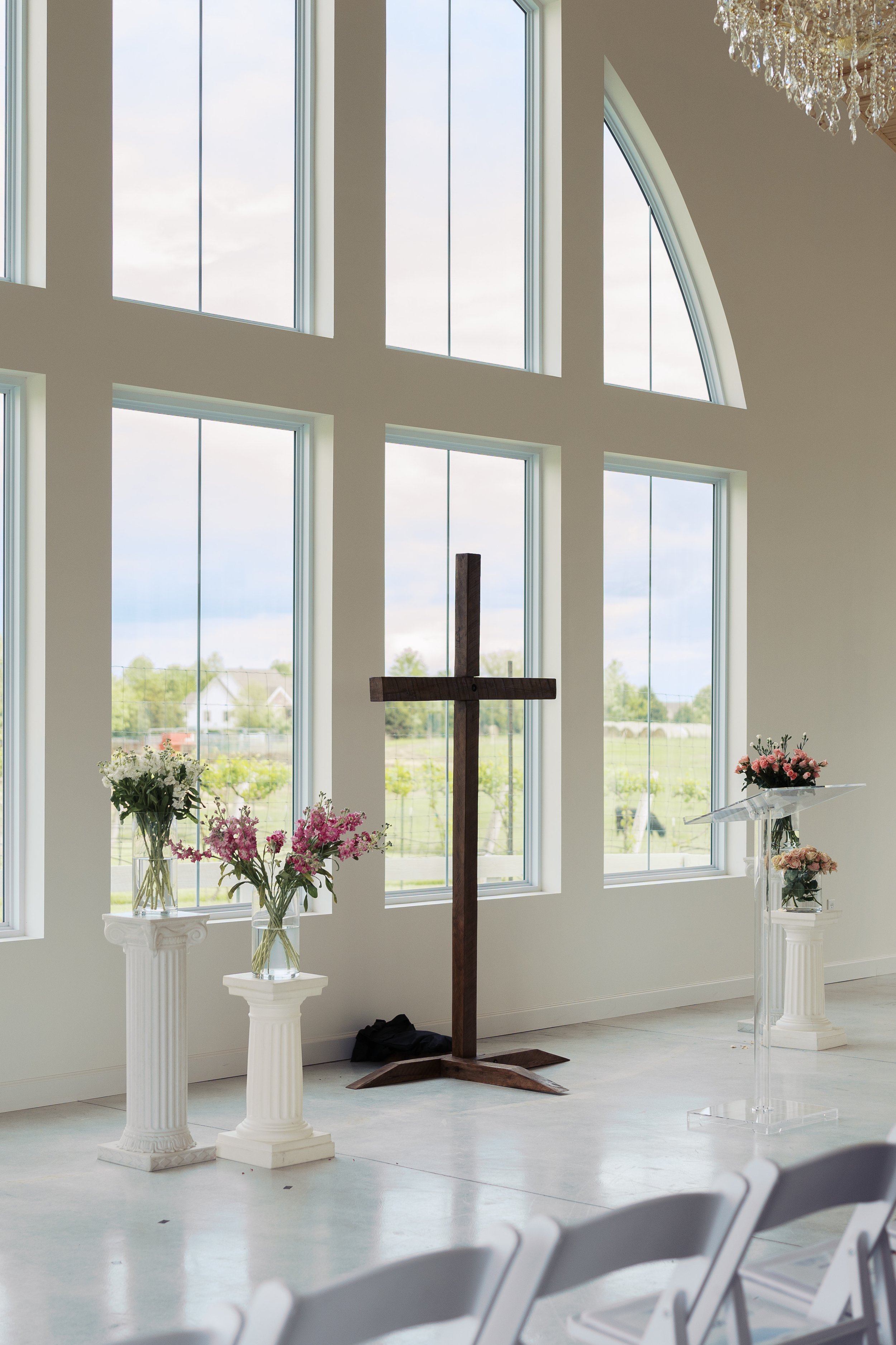 The Event Center Our Event Center blends modern design with upscale amenities, accommodating up to 300 guests. Highlights include a Chapel Room overlooking the vineyard, an expansive bar, and a professional kitchen for the caterer of your choice.